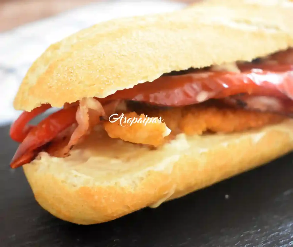 El secreto detrás de este bocadillo es la cuidadosa preparación de los ingredientes. Los filetes de pollo empanizados se doran a la perfección, ofreciendo una textura irresistible. Los pimientos rojos fritos aportan una nota de dulzura y un contraste de color que hará que el plato sea aún más atractivo. Y el bacón frito con la mezcla de mostaza y miel es el toque audaz que transforma este bocadillo en algo realmente especial.
